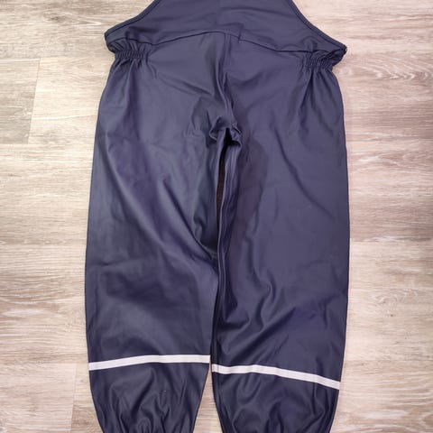 Myk og behagelig regnbukse str 3år. Litt slitt på refleks og mangler strikk, men kan finfint brukes!