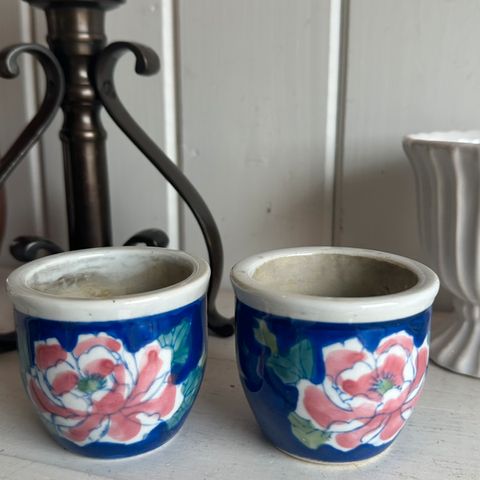 To håndlagede keramikk skåler med fot , pen stand men noen bittesmå nag , se bilder , sender gjerne mot porto