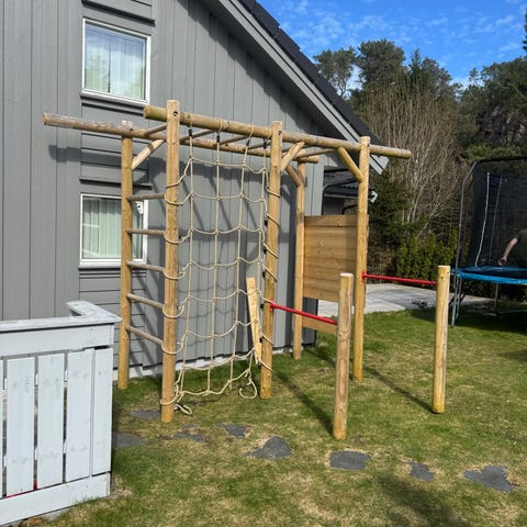 Selger en liten klatrevegg laget av impregnert materiale så den passer fint ute. Kan leveres i Ålesunds-området.