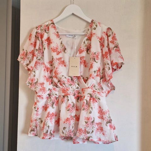 Blomstrete topp fra Vila plus size-kolleksjon størrelse 46. Stor og romslig i størrelsen. Transparent ytterstoff og mørkeblått for.