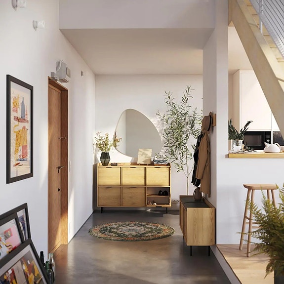 Du kan velge å plassere TV-benken på gulvet, eller å montere den på veggen for å frigjøre gulvplass.