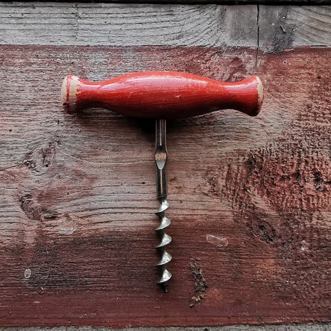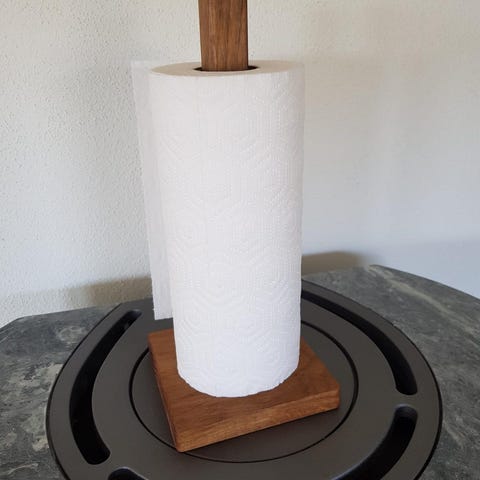 Stående tørkerullholder fra 70-tallet i rødmalt treverk.