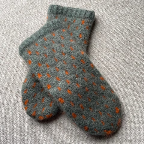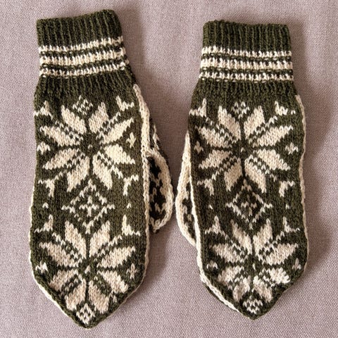 Hjemmestrikkede blå votter til Herre eller dame med stor hånd. Vottene er helt ny, har aldri vært brukt