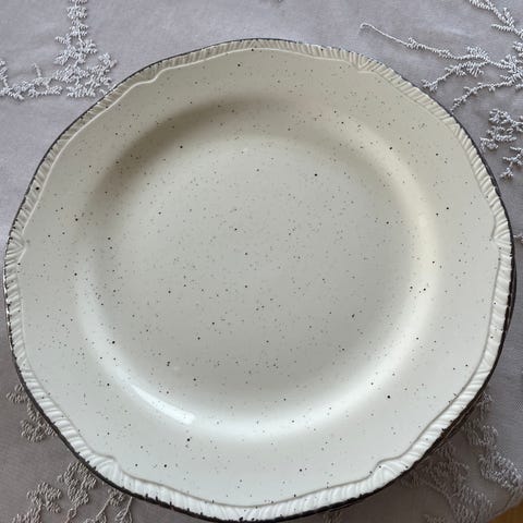 Selger vintage bruks- og pyntetallerkener (+ 2 skåler) fra utenlanske produsenter, bl.a. Gustavsberg, Staffordshire og Villeroy & Boch. Se beskrivelse under hvert enkelt bilde. De fleste er i god stand. To har nagg, et er litt slitt. Ellers vises krakeleringer godt på bildene. Pris kr 25 pr. stk.