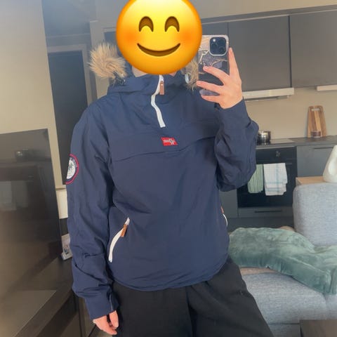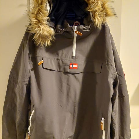 Allværsjakke fra Papalou - varm og god. Mange praktiske detaljer; lommer, hette og refleks. Ny!