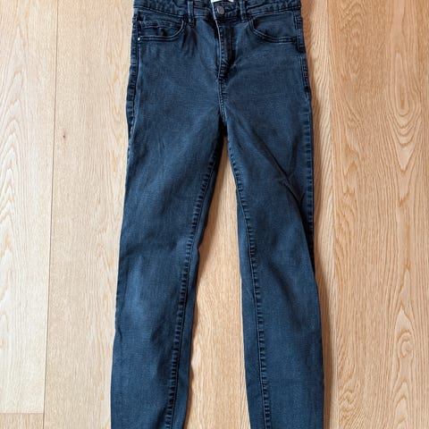 Grå jeans fra Gina Tricot. Rett modell, med normalt til noe høyt liv. Ingen stretch. Str 38. Synes ikke at de er brukt.