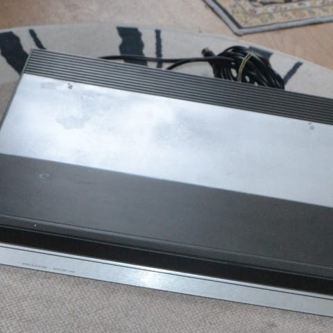 Bang & Olufsen Beogram 5000 uten stift. Alt ser ut til å fungere bortsett fra noe med den automatiske returmekanismen. Når spilleren startes går armen ut og senker seg på riktig sted, og når den stoppes løfter armen seg og motoren stanser. Armen går imidlertid ikke automatisk tilbake til startposisjonen, så dette må gjøres manuelt.