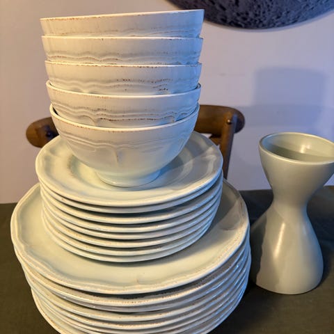 11 middagstallerkener i godt stand. Et lite blått merke på den ene, som vist på 4.bilde. Selges samlet, må hentes.