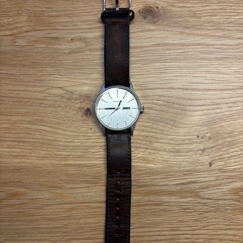 En svært pen Nixon klokke med lærreim. Klokken kommer komplett med boks og kvittering fra norsk utsalgssted. Kan byttes i produkter fra Bluesound eller NAD.