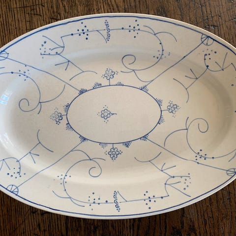 Egersunds Fayancefabrik - gammelt, ovalt serveringsfat - nr. 2