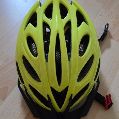 **Hjelm nr 3 er limet litt pga av en liten sprekk i den tynne plasten ytterst. Denne sprekken oppsto da den ble klemt av sykkelstyret under transport. Hjelmen er ikke blitt utsatt for hard «påkjenning»( se markering bilde).