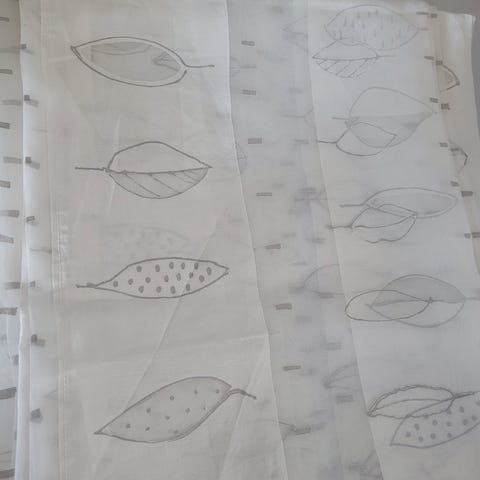 Tynne, lette hvite gardiner m/gjennombrutt grenmønster fra Kid.