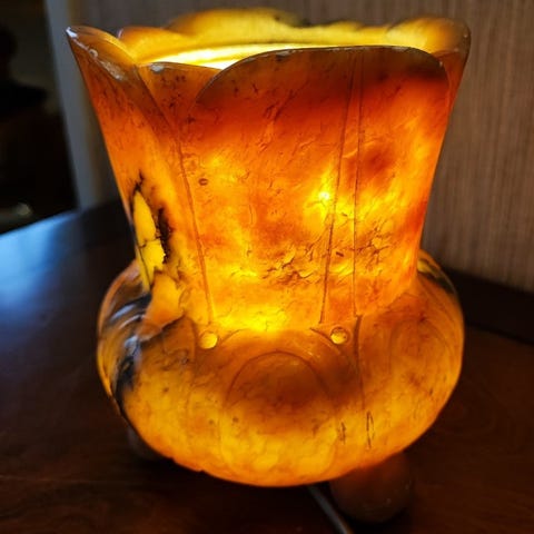 Lampe med Elg figur i metall med rund bakgrunn i lys materiale. Passer som dekorasjon i hjem eller kontor.
