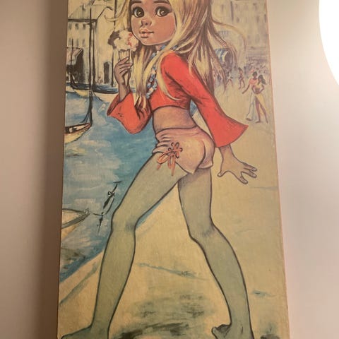To fine vintage bilder, det ene laget av Michel T, det andre av Jolylle/Idylle Falconi. Begge er trykk på treplate med fungerende oppheng bak og . Slike hang på mangt et barne/tenåringsrom på 60- og 70-tallet 😊 og har nå blitt samleobjekter.