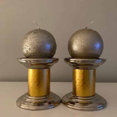 Stearinlys formet som snøballe/julekuler. 4stk selges 50kr.