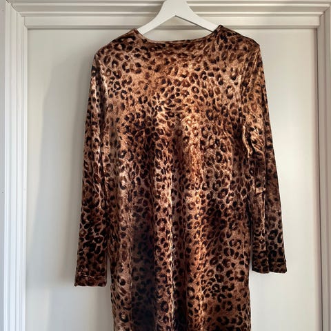 kjole, leopardkjole, leopard print, mønstrete kjole, vintage kjole, retro kjole, bomullskjole, sommerkjole, hverdagskjole, festkjole, kort kjole, lang kjole, brukt kjole, second hand, 90-talls kjole, bohem kjole, trendy kjole, fashion, dameklær, klær til dame, stilfull kjole, unik kjole