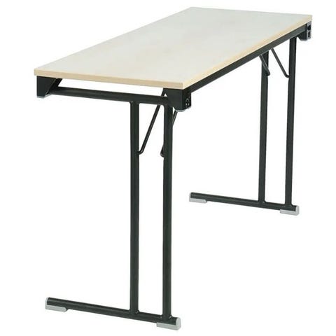«Sammenleggbart skrivebord Arve, 1200x600x18 mm, hvit/sølv. Et sammenleggbart skrivebord som er enkelt å sette opp for en midlertidig arbeidsplass. Tar minimalt med plass når de ikke er i bruk siden de er stabelbare når de er sammenslått. Bordet har fellbare T-ben i forskjellige design og er produsert av sølvlakkerte stålrør. Bordplate i 18 eller 25 mm tykkelse, med en slitesterk overflate av laminat.»