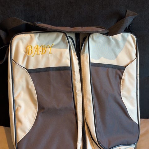 Flott til babyutstyr. Har mange rom og hank til å henge opp. Krok inni også, så den kan henges opp også når den er åpen.