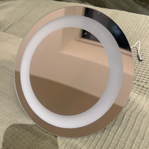 Snart et år gammel brukt veggspeil md lys på bad til salgs 1000 kr.