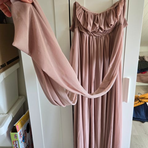 Rosa selskapskjole selges. Str 34. Brukt som brudepikekjole en gang.