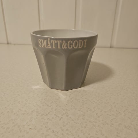 Liten serveringsbolle/ godteriskål med skriften «Smått & Godt».