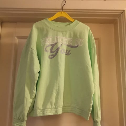 Hvit høyhalset genser i 95 % bomull og 5 % elastan. Størrelse er 146.