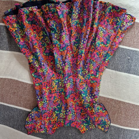 Pent brukt marineblå festkjole med fine detaljer. Rosa store blomster.