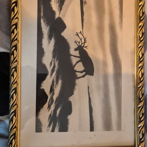 Trykk på papir av vinterlandskap med rev selges. Ikke brukt, fortsatt innpakket i plasten den ble sendt i. Selges da vi gikk for blått og ikke grønt tema på barnerommet.