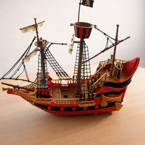 Gamelt skip av tre med muligheter for lys inni. 80cm langt 55 cm høy, noen løse deler men med litt lim er den fin igjen