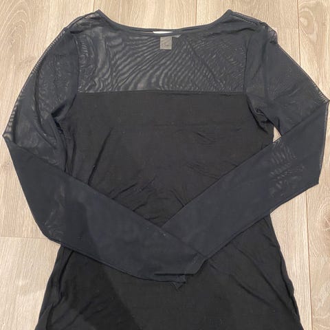 Eksklusiv og unik topp fra Meghan. Den er todelt, med en singlet og en topp til å ha over. Singleten er smal i modellen uten strech, toppen over har mer vidde. Det er et lite bruksmerke bak på toppen , hvor en tynn tråd er blitt revet opp. Det synes ikke noe særlig når plagget er på ( se bilde ) Dette er et nydelig plagg med fine detaljer og særpreg. Str. 4 ( amerikansk ) , noe som tilsvarer en xs/s størrelse.