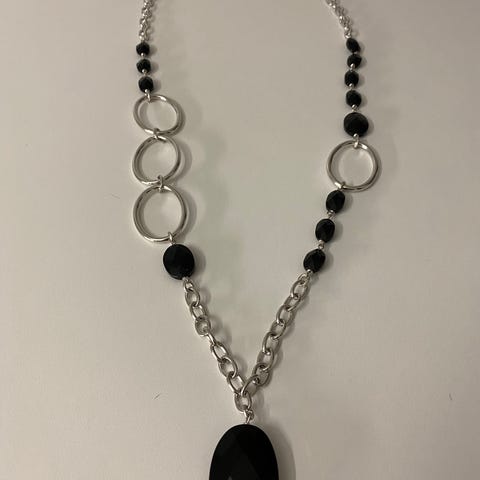 Catwalk kjede, fra Gull -Funn, med ferskvanns perler, hvite-svarte, butikk pris 1498,0 kr, med lappen, aldri brukt. Lengde 102 cm.