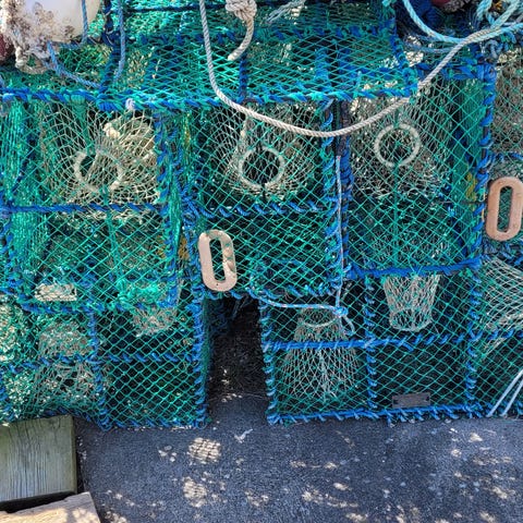 Krepseteiner selges samlet. 8 stk. Meget pent brukt. Inkludert tauverk og blåser.