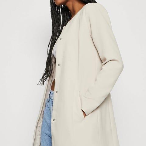 Hvit kåe i vannavisende stoff. Lite i str. Passer 36/38. Smal model.