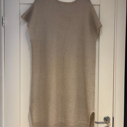 Gråmelert mohair blanding, str M. Kjøpt for å bruke som kjole med skjorte/ pologenser/støvler. Lengde 97 cm, bredde 53 cm.