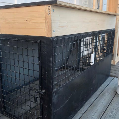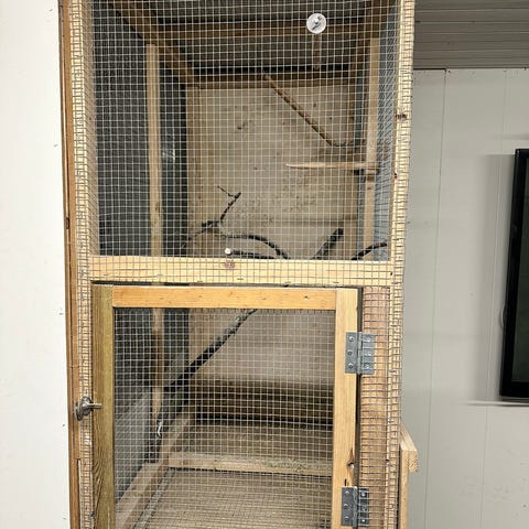 Stort hjemmelaget bur til hamster. Kan åpnes på toppen, eller dør foran. Har en ekstra hylle for mer plass.