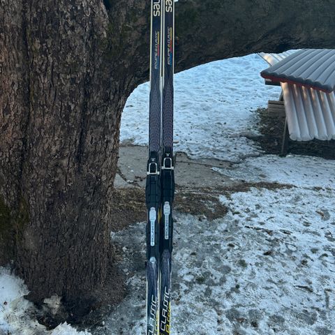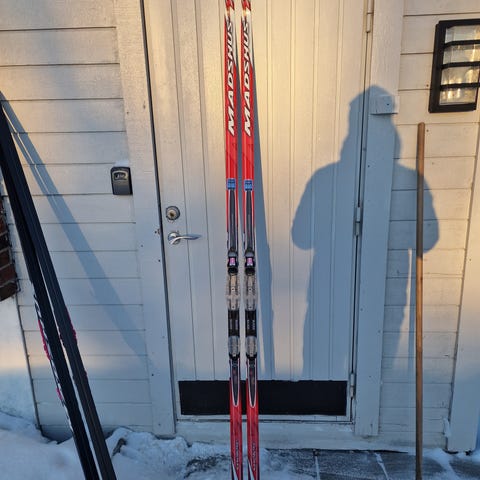 Brukte ski med Rottefella bindinger.
