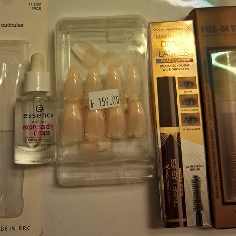 Ubrukt sminke og negler. Her får du både øyenskygge, bronzing pudder, koster og negler. Selges da det ikkje blir brukt av meg.