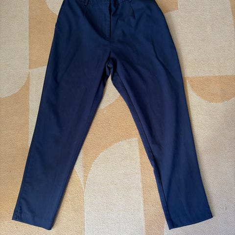 Mørkeblå bukse fra terranova. Stramming i livet, lommer i sidene og oppbrettet kant i leggene. Behagelig på.