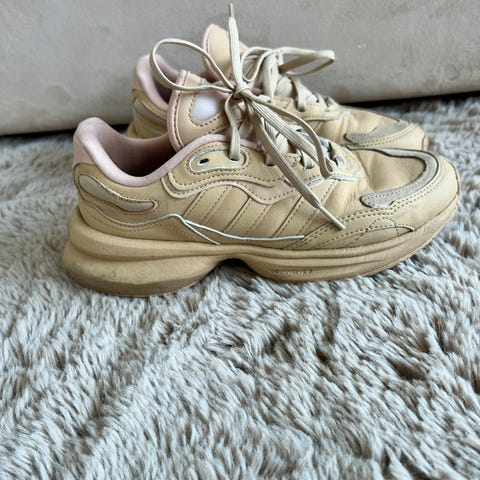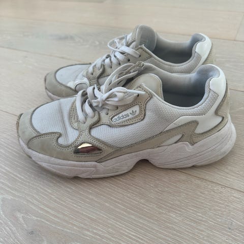 Som nye, brukt bare en gang, var litt for smale for min fot, har mørk såle. Adidas Snickers str.. 37 og 3/4 deler. (nesten str.38. )Men er nok mer som en 37 størrelse. De kostet som nye 1000kr, selger for kr. 400.