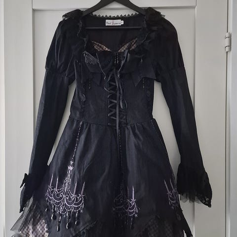 En fin svart lace mini kjole fra Jones + Jones med tyll underskjørt og åpen rygg