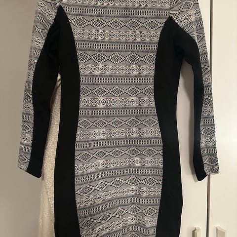 Svart Hm kjole med hvite detaljer i str 38