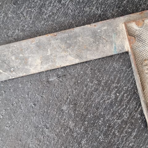 Gammel vinkel verktøy håndtak måler 16.5×2.7cm metallet som vinkles måler 25.5cm.