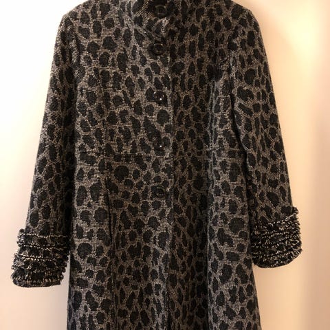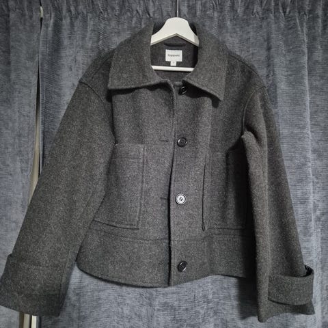 Klassisk kåpe med knyting i livet. To store lommer. Str 36
