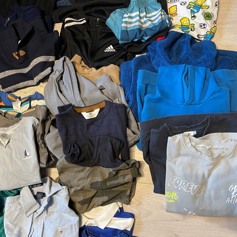 Ingen flekker / hull eller mangler på klærne som eg kan se. Men klærne er brukt 😊 noe brukt en gang eller 2. andre plagg er mer brukt.