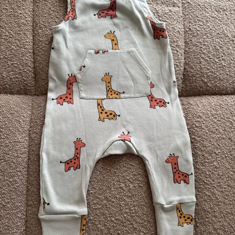 Ubrukt sparkebukse til sommerbaby i str 62. Vaska ein gang med parfymefritt vaskemiddel.