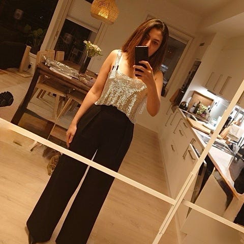 Svart fin bukse fra Kaffe. Vide ben. Str 32. Strikk i livet. Lite brukt.