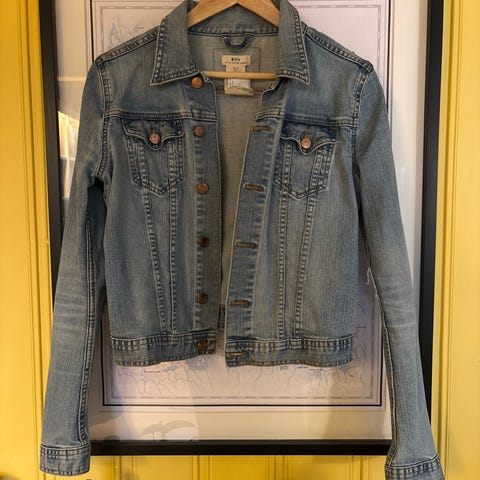 Veldig lite brukt mørkeblå olajakke i str S/ 36 fra DKNY jeans. Ordentlige lommer og fine detaljer.