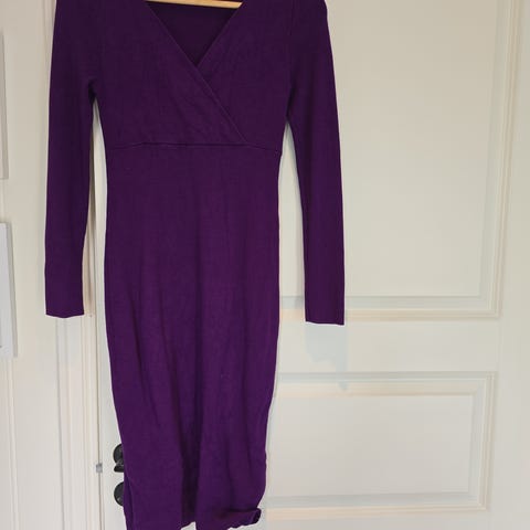 Kjole fra Hugo boss i lilla, str L (men noe liten på str). Glidelås og knapper i ryggen. Røyk og dyrefritt hjem. Kan sendes om kjøper betaler porto.