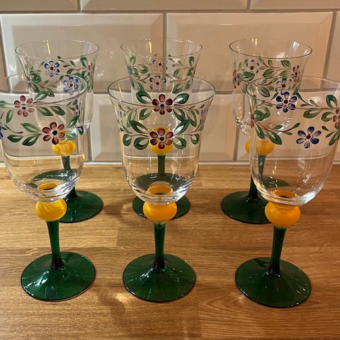7 strøkne krystall glass i dyp rød farge.