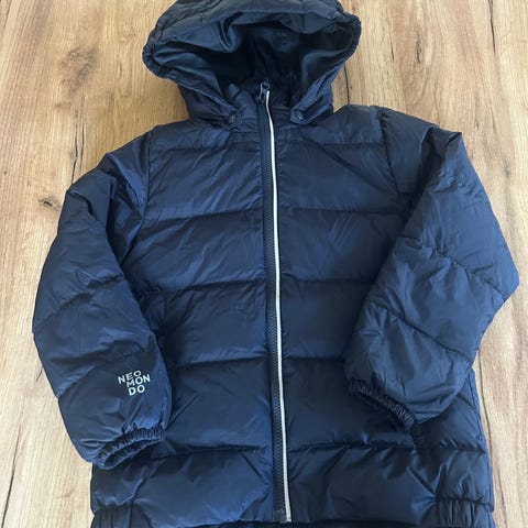 Fin PelleP jakke i marineblå i str 130. Lite merke etter en klistre refleks.